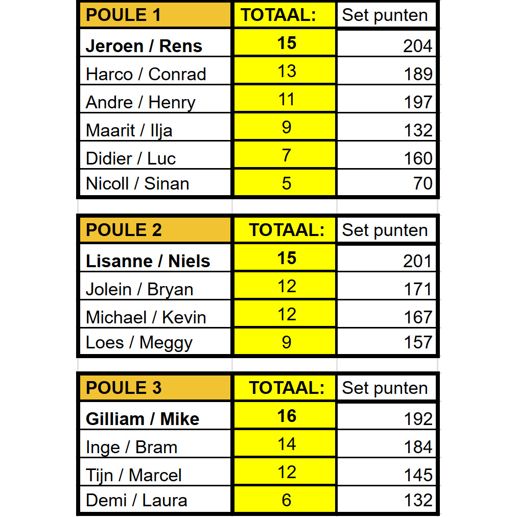Poule 1: Jeroen & Rens